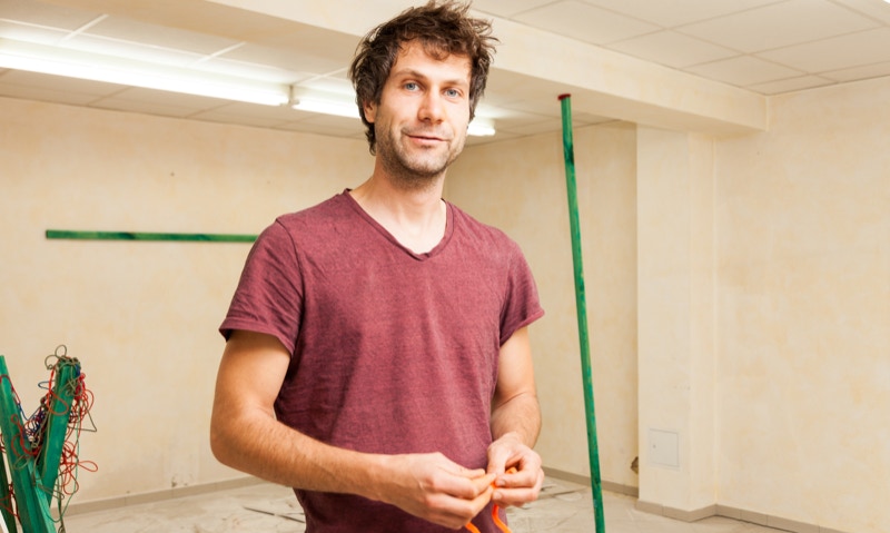 Während Isabelle Borges sich als Malerin etabliert hat und zunehmend in den realen Raum expandiert, ist Christian Henkel ein Bildhauer, der seine skulpturalen Arbeiten bemalt. Sein Ansatz ist ein stark materialbetonter, formaler und zunehmend konstruktivistischer. Die Werke beinhalten einen Prozess des Machens und Bauens, der fortlaufenden Herstellung oder Zerstörung und vermitteln eine Aura der permanenten Atelierbaustelle. Das Amateurhafte und Nichtperfekte, das Unvollendete und Offene wird zum kalkulierten Teil seiner Ästhetik, auch in dem die Arbeitsspuren und Fehler in der Oberfläche absichtsvoll hervorgehoben werden. Viele seiner Arbeiten der letzten Jahre sind in der Auswahl des Materials und der Bearbeitung ihrer Oberfläche inspiriert von am Straßenrand gesehenen Sperrmüllhaufen und den provisorischen Relikten deutscher Heimwerker in ihren Schrebergärten.